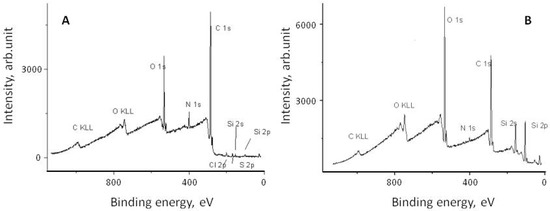 ESCA spectra of eremomycin (A) and corresponding stationary phase E-CSP (B).