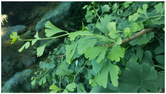 - Stanković, M.S. Biology and Ecology of Ginkgo biloba L. (GinkgoaceaeI); Nova Science Publishers, Inc.: Hauppauge, NY, USA, 2016; ISBN 978-1-63484-460-4. [Google Scholar]