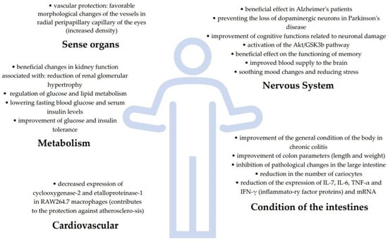 Ginkgo biloba leaf extract is one of the best-selling herbal remedies in the world and the most-sold herbal supplement in the US and Europe. It has great therapeutic potential, including scavenging free radicals, reducing oxidative stress, as well as reducing damage to the nervous system and reducing platelet aggregation. It also has anti-inflammatory, anti-cancer and anti-aging properties. Clinical studies also confirm its beneficial effects, among others, in the treatment of central nervous system disorders—Alzheimer’s disease and cognitive deficits [5].