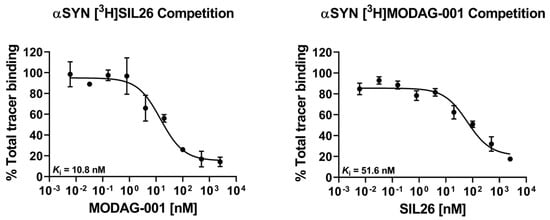 Radioactivity was plotted against increasing concentrations of [3H]MODAG−001, [3H]SIL26, or the unlabeled test compounds. Data points were fitted using non-linear regression analysis in GraphPad Prism (GraphPad Software, Inc., Version 8.4.0, San Diego, CA, USA).