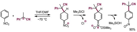 Silylation of σH adducts of methinic carbanions followed by elimination of silanol gave substituted nitrosobenzenes (Scheme 12) [].