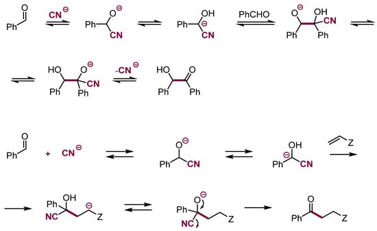 - Seebach, D. Methods of Reactivity Umpolung. Ang. Chem. Int. Ed. 1979, 18, 239–258. [Google Scholar] [CrossRef]