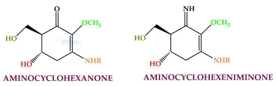 Mycosporine-like amino acids (MAAs) (Figure 3) are secondary metabolites with low molecular weight (<400 Da) synthesized for protection against solar radiation and found in the cell cytoplasm [121]. Mycosporine-like amino acids are made by cycloheximide or cyclohexenone conjugated to amino acid or an imino alcohol residue [122]. They are extracted mainly from Rhodophyceae (e.g., shinorine, asterina, porphyra, palythine, polyphenol, mycosporine-glycine, and palythene) [123,124] and from Asparagopsis armata, Mastocarpus stellatus, Chondrus crispus, Gelidium sp., Palmaria palmata, Gracilaria cornea, Grateloupia lanceola, Solieria chordalis, and Curdiea racovitzae. This compound class has shown antioxidant, photoprotective, anti-proliferative [125], anti-aging, and anti-inflammatory activities [126].