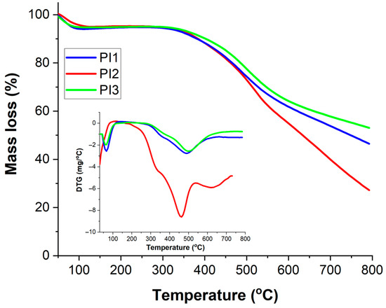 Molecular weight values and thermal stability parameters for PI1, PI2, and PI3.