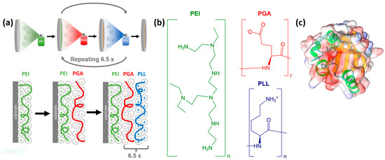 - Ladam, G.; Gergely, C.; Senger, B.; Decher, G.; Voegel, J.-C.; Schaaf, P.; Cuisinier, F.J.G. Protein Interactions with Polyelectrolyte Multilayers: Interactions between Human Serum Albumin and Polystyrene Sulfonate/Polyallylamine Multilayers. Biomacromolecules 2000, 1, 674–687. [Google Scholar] [CrossRef]