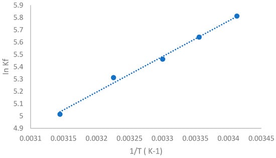 The relationship between InKf and the inverse of the absolute temperature (1/T) for TQ-SBE-β-CD.