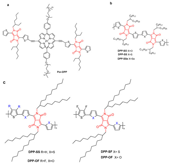 The structure of (a) Por-DPP; (b) DPP-SO, DPP-SS, and DPP-SSe; and (c) DPP-SS, DPP-OF, DPP-SF and DPP-OF.