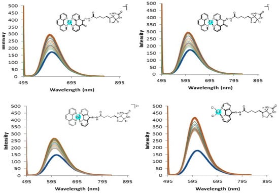 - Lo, K.K.-W.; Hiu, W.-K.; Chung, C.-K.; Tsang, K.H.-K.; Lee, T.K.-M.; Ng, D.C.-M. Luminescent Transition Metal Polypyridine Biotin Complexes. J. Chin. Chem. Soc. 2006, 53, 53–65. [Google Scholar] [CrossRef]