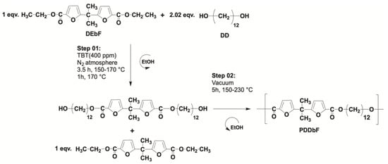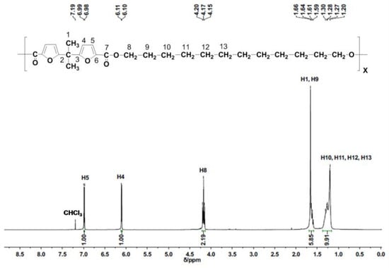 3.3. Synthesis of Poly(1,12-dodecylene 5,5′-isopropylidene-bis(ethyl 2-furoate)) (PDDbF)