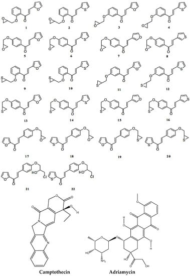 - Jeon, K.-H.; Yu, H.-B.; Kwak, S.Y.; Kwon, Y.; Na, Y. Synthesis and topoisomerases inhibitory activity of heteroaromatic chalcones. Bioorg. Med. Chem. 2016, 24, 5921–5928. [Google Scholar] [CrossRef]