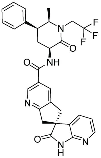 - Moore, E.; Fraley, M.E.; Bell, I.M.; Burgey, C.S.; White, R.B.; Li, C.C.; Rega, C.P.; Danziger, A.; Michener, M.S.; Hostetler, E.; et al. Characterization of Ubrogepant: A Potent and Selective Antagonist of the Human Calcitonin Gene-Related Peptide Receptor. J. Pharmacol. Exp. Ther. 2020, 373, 160–166. [Google Scholar] [CrossRef] [PubMed]