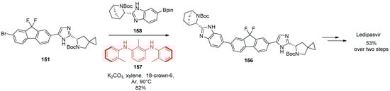 - Scott, R.W.; Vitale, J.P.; Matthews, K.S.; Teresk, M.G.; Formella, A.; Evans, J.W. Synthesis of Antiviral Compound. US Patent Appl. US20130324740, 5 December 2013. [Google Scholar]