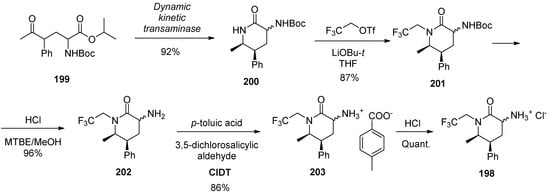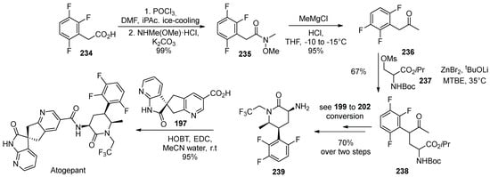 - Chen, F.; Molinaro, C.; Wuelfing, W.P.; Yasuda, N.; Yin, J.; Zhong, Y.-L.; Lynch, J.; Andreani, T. Process for Making CGRP Receptor Antagonists. US Patent Appl. US2016130273, 12 May 2016. [Google Scholar]