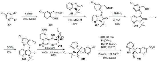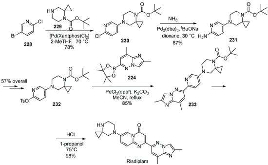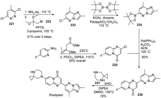- Adam, J.-M.; Fantasia, S.M.; Fishlock, D.V.; Hoffmann-Emery, F.; Moine, G.; Pfleger, C.; Moessner, C. Process for the Prepration of 7-(4,7-diazaspiro[2.5]octan-7-yl)-2-(2,8-dimethylimidazo[1,2-b]pyridazin-6-yl)pyrido[1,2-a]pyrimidin-4-one Derivatives. PCT Int. Appl. 2019057740, 28 March 2019. [Google Scholar]
