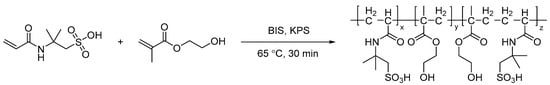 Synthesis roadmap of P(Hema-co-AmPS) gel (adapted from []).
