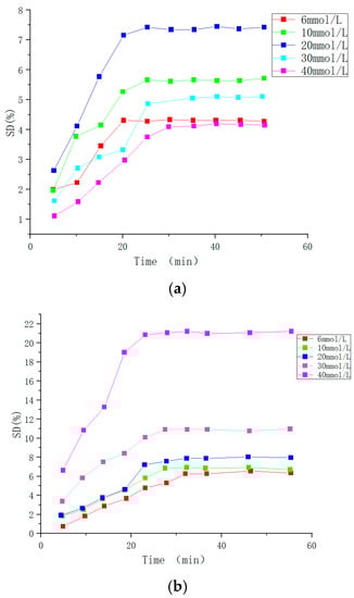 To prepare environmentally and friendly electric field response gel, Han Xuewu et al. [] adopted natural gelatin as the raw material, introduced the sulfonic acid polar group in the molecular chain, and synthesized a new sulfonated gelatin hydrogel through a series of reactions. The study found that: under the effect of the applied electric field, the content of the S element was positively correlated with the electric field response-ability of the colloid. When the electric field strength is 1.6 kV/mm, and S content is 1.59%, the responsiveness of the gel is the most obvious. Although the gel prepared from natural gelatin is environmentally and friendly, strong hydrophilic, and biodegradable, it has poor mechanical properties and poor stability.