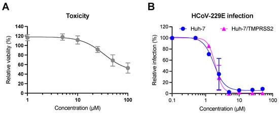 2.5. Antiviral Activity of Luteolin against HCoV-229E and Toxicity in Huh-7 Cells