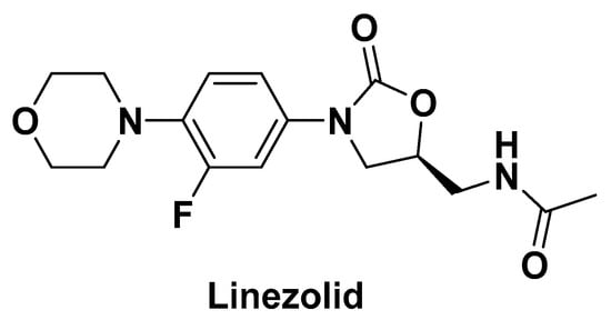- Foti, C.; Piperno, A.; Scala, A.; Giuffrè, O. Oxazolidinone Antibiotics: Chemical, Biological and Analytical Aspects. Molecules 2021, 26, 4280. [Google Scholar] [CrossRef]