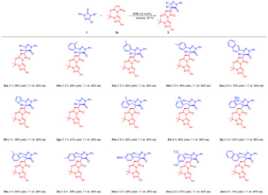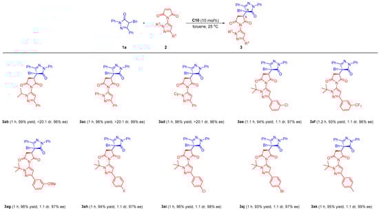 2.3. Substrate Scope of N-Pyrazolyl Maleimides 2