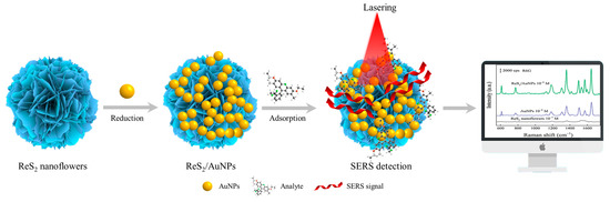 Schematic of preparation and SERS detection of ReS2/AuNPs.