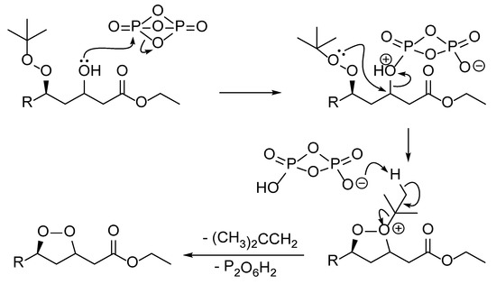P2O5-mediated cyclisation of δ-peroxy-β-hydroxy esters.