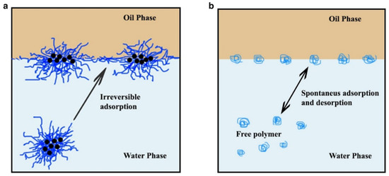 (a) Irreversible adsorption of PAM-grafted SiO2 nanoparticle (b) dynamic adsorption of traditional polymer [144].