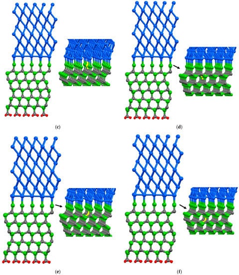 - Wu, Q.; Xie, J.; Wang, A.; Wang, C.; Mao, A. Effects of vacancies at Al(1 1 1)/6H-SiC(0001) interfaces on deformation behavior: A first-principle study. Comput. Mater. Sci. 2019, 158, 110–116. [Google Scholar] [CrossRef]