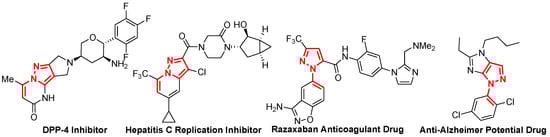 - Quan, M.L.; Lam, P.Y.S.; Han, Q.; Pinto, D.J.P.; He, M.Y.; Li, R.H.; Ellis, C.D.; Clark, C.G.; Teleha, C.A.; Sun, J.H.; et al. Discovery of 1-(3′-Aminobenzisoxazol-5′-yl)-3-trifluoro-methyl-N-[2-fluoro-4-[(2′-dimethylaminomethyl) imidazol-1-yl] phenyl]-1H-pyrazole-5-carboxyamide Hydrochloride (Razaxaban), a Highly Potent, Selective, and Orally Bioavailable Factor Xa Inhibitor. J. Med. Chem. 2005, 48, 1729–1744. [Google Scholar] [CrossRef]