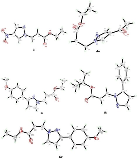 - CCDC 2248238 (3l), CCDC 2248246 (4o), CCDC 2248247 (5c), CCDC 2248248 (6c) and CCDC 2248252 (5k’). The Cambridge Crystallographic Data Centre. Available online: www.ccdc.cam.ac.uk/datarequest/cif (accessed on 13 March 2023).