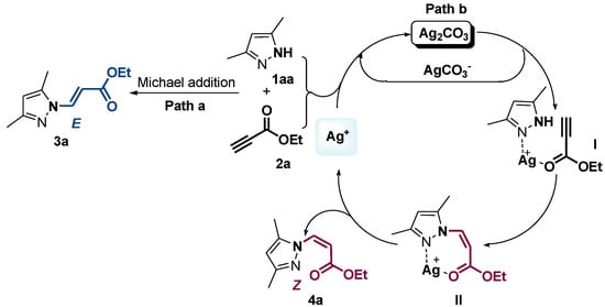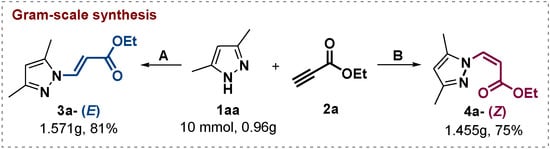 Chicago/Turabian StyleZhang, Xue, Zheyu Zhang, Haifeng Yu, and Guangbo Che. 2023. "Regio- and Stereoselective Switchable Synthesis of (E)- and (Z)-N-Carbonylvinylated Pyrazoles" Molecules 28, no. 11: 4347. https://doi.org/10.3390/molecules28114347