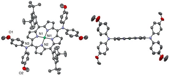 The same planarity of the porphyrin macrocycle was observed for the 5,15-bis(dianisylamine)nickel(II) porphyrin (see Figure 3).
