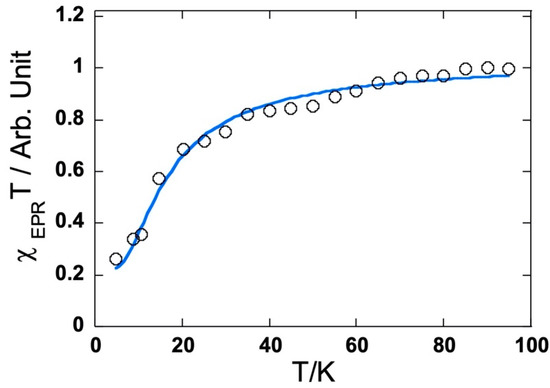 Temperature dependence of the EPR susceptibility (χT product) in CH2Cl2 frozen solution for the dication of 6.