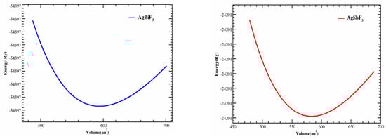 The optimized curve of AgZF3 (Z = Sb, Bi) complexes built in by the Birch–Murnaghan equation.