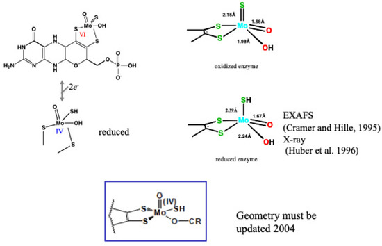 - Pai, E.F.; Nishino, T. The molybdenum-containing xanthine and picolic acid dehydrogenase. In Metal Ions in Biological Systems; Siegel, A., Sige, H., Eds.; Marcel Dekker, Inc.: New York, NY, USA, 2002; pp. 431–454. [Google Scholar]