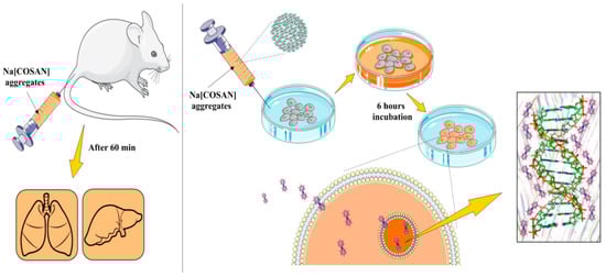 Schematic representation of the in vitro (right) and in vivo (left) studies of Na[o-COSAN] [85].