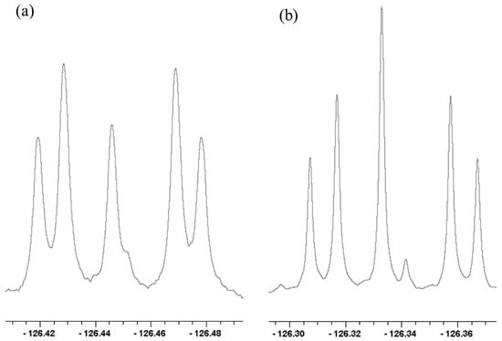 We first focus on dicarboxylate monoanions, perturbed by 18O labeling in one of the carboxylates but not in the other. For a rapidly equilibrating mixture of such monoanions, the 13C NMR signal is averaged over two tautomers, which differ by whether the proton is on the 16O-labeled carboxyl or on the 18O one (strictly, there are four tautomers, and the proton can be on either O of a mono-18O-labeled carboxyl. This arbitrariness merely leads to a halving of the effect possible from double labeling at one carboxyl). The equilibrium constant between the two tautomers, KT, or the ratio of 16O and 18O acidity constants, is >1, owing to differences in zero-point energies [34,35,36,37]. The 18O-protonated tautomer is favored and thus weighted more heavily in the averaging. As a result, the 13C16O signal is shifted slightly downfield and the 13C18O slightly upfield. The isotope shift is related to KT by Equation (3), where D is the difference between chemical shifts of carboxyl and carboxylate carbons in the monoanion Equation (4). Although those two shifts cannot be observed distinctly, D can be estimated from the chemical shifts of diacid and dianion Equation (5). Regardless of this approximation, the qualitative conclusion is that this method is capable of distinguishing symmetric H-bonds from asymmetric ones.