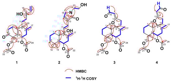 2.1. Elucidation of the Chemical Structures of Zeylleucapenoids A–D (1–4)