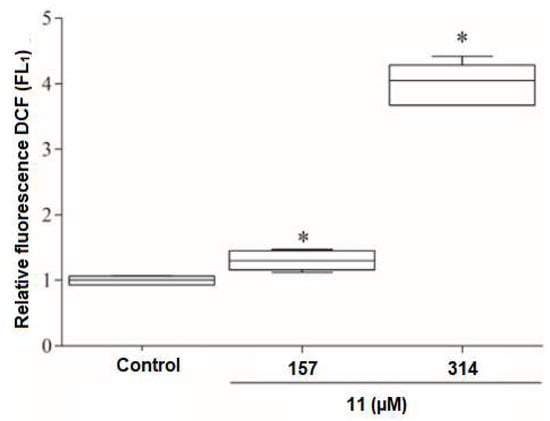 2.5. Structural Evaluation of Epimastigote Forms of T. cruzi Treated with 11