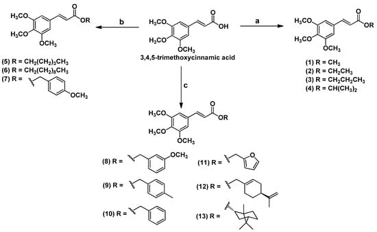 - Silva, R.H.N.; Andrade, A.C.M.; Nóbrega, D.F.; de Castro, R.D.; Pessôa, H.L.F.; Rani, N.; de Sousa, D.P. Antimicrobial Activity of 4-Chlorocinnamic Acid Derivatives. Biomed. Res. Int. 2019, 2019, 3941242. [Google Scholar] [CrossRef]