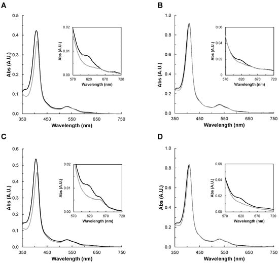 - Foote, N.; Peterson, J.; Gadsby, P.M.; Greenwood, C.; Thomson, A.J. Redox-linked spin-state changes in the di-haem cytochrome c-551 peroxidase from Pseudomonas aeruginosa. Biochem. J. 1985, 230, 227–237. [Google Scholar] [CrossRef]