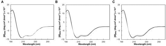 - Miles, A.J.; Ramalli, S.G.; Wallace, B.A. DichroWeb, a website for calculating protein secondary structure from circular dichroism spectroscopic data. Protein Sci. 2022, 31, 37–46. [Google Scholar] [CrossRef]