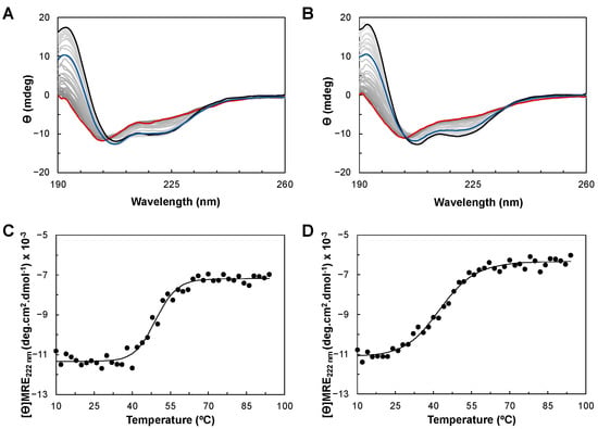 - Greenfield, N.J. Using circular dichroism collected as a function of temperature to determine the thermodynamics of protein unfolding and binding interactions. Nat. Protoc. 2006, 1, 2527–2535. [Google Scholar] [CrossRef] [PubMed]