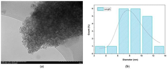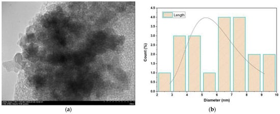 Sample of PYNPs: (a) TEM spectra and (b) particle size distribution.
