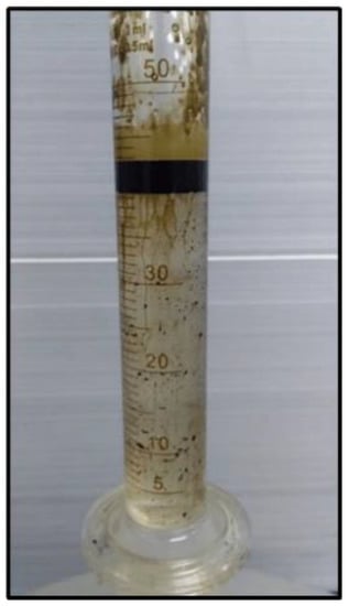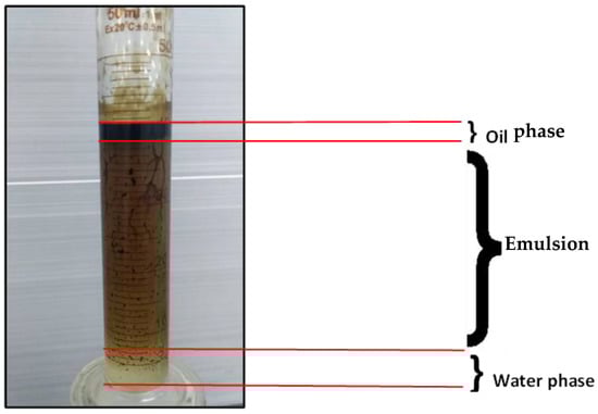 Since Windsor type I was achieved for the combination of the output liquid from polymer flooding with CSNPs, as shown in Figure 13, therefore, water flooding or water plus polymer flooding using CSNPs/HPAM was not efficient enough in extracting large amounts of oil from the core sample, in comparison to water and polymer flooding with the PYNPs/HPAM solution, as illustrated in Table 2.
