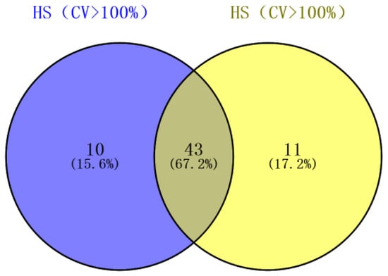 The metabolites with a CV value > 100% analyzed by a Venn diagram.