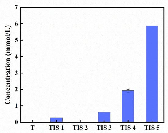 The critical micelle concentrations (CMCs) of the TISs were measured using electrical conductivity at 25 °C, as shown in Figure S16. TIS 4 and TIS 5 had measurable CMCs of 0.31 mmol/L and 0.66 mmol/L, respectively, indicating that they could form micelles at these concentrations. However, the CMCs of TIS 1, TIS 2, and TIS 3 could not be measured because they were probably insoluble in water under ambient conditions, which prevented them from forming micelles. Therefore, reliable data on the CMCs of these compounds were not available.
