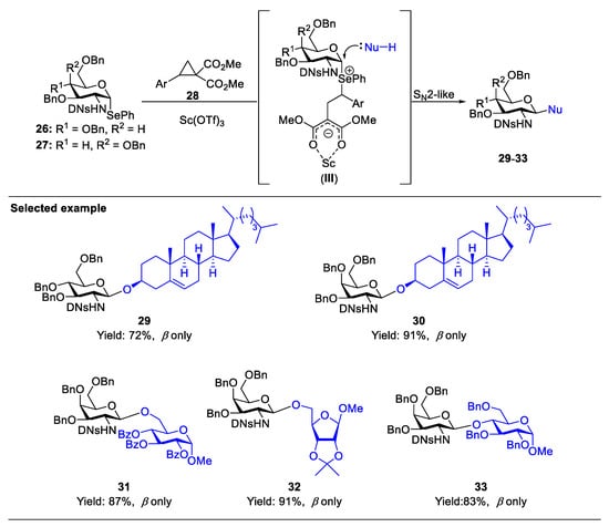 - Wang, X.; Wang, P.; Li, D.; Li, M. 2,4-Dinitrobenzenesulfonamide-Directed SN2-Type Displacement Reaction Enables Synthesis of β-D-Glycosaminosides. Org. Lett. 2019, 21, 2402–2407. [Google Scholar] [CrossRef] [PubMed]