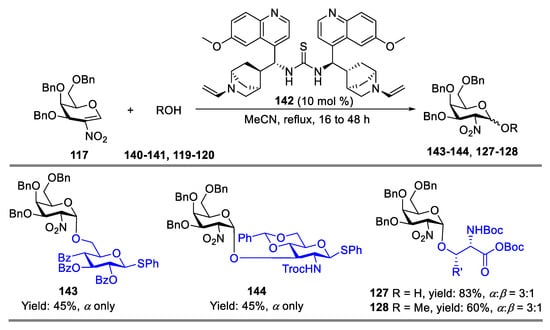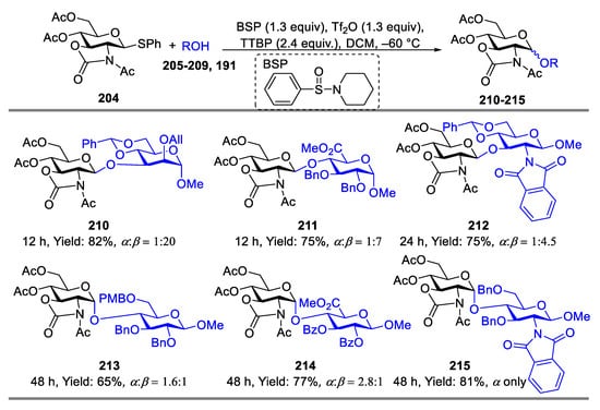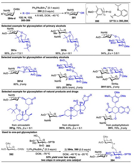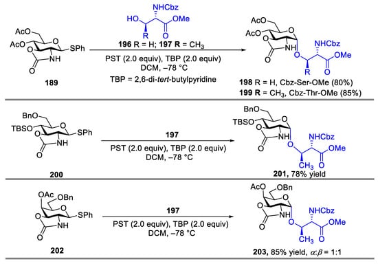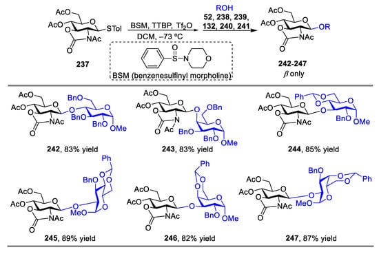 - Beau, J.M.; Boyer, F.D.; Norsikian, S.; Urban, D.; Vauzeilles, B.; Xolin, A. Glycosylation: The Direct Synthesis of 2-Acetamido-2-Deoxy-Sugar glycoside. Eur. J. Org. Chem. 2018, 2018, 5795–5814. [Google Scholar] [CrossRef]