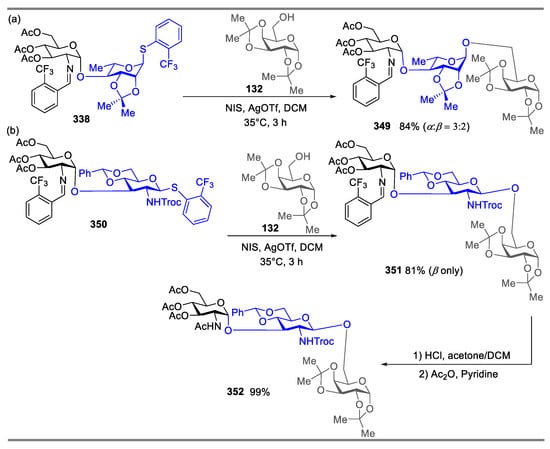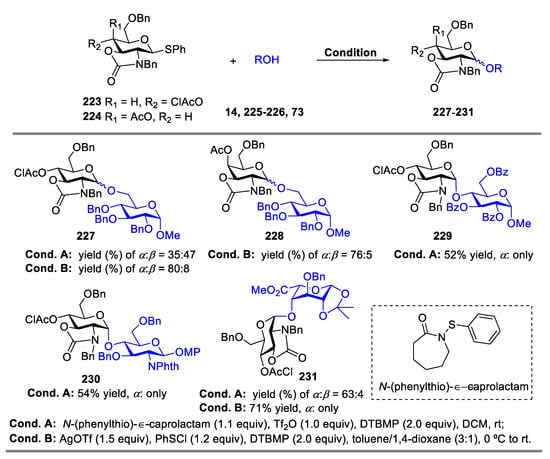 - Li, Z.-T.; Gildersleeve, J.C. Mechanistic Studies and Methods to Prevent Aglycon Transfer of Thioglycoside. J. Am. Chem. Soc. 2006, 128, 11612–11619. [Google Scholar] [PubMed]
