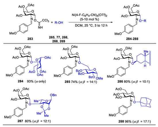 2.4.1. The Development of Nickel-Catalyzed Stereoselective Glycosylation